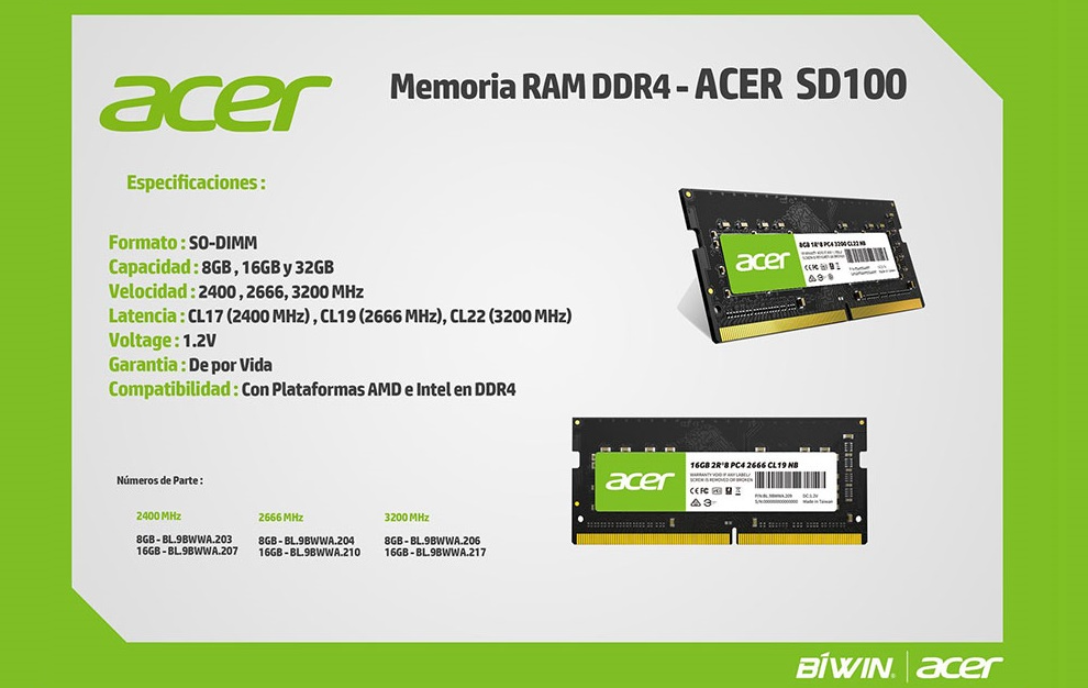 Memoria Ram ACER SD100 SODIMM