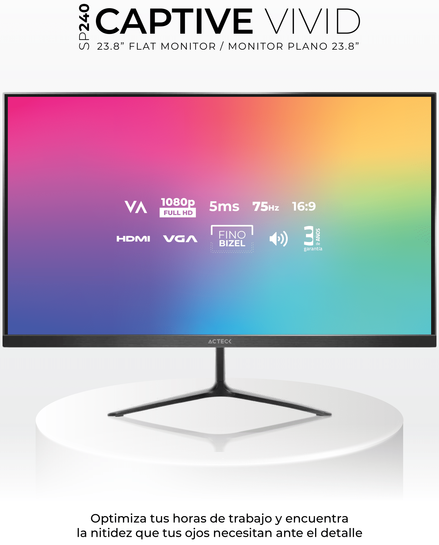 Monitor Acteck Captive Vivid SP240 LED IPS 23.8″, Full HD, 75Hz, HDMI, Bocinas Integradas (2 x 3W RMS), Negro