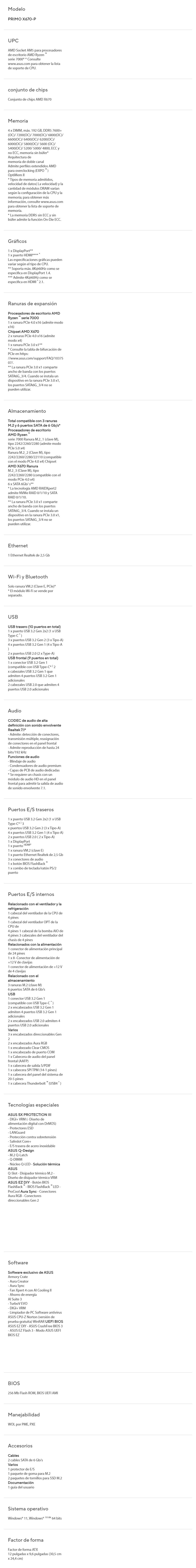 Tarjeta Madre ASUS Prime X670-P / Socket AM5 / 192GB X4 DDR5 7600Mhz / M.2 PCIe 5.0 / Dp, Hdmi / USB 3.2, 2.0 / ATX