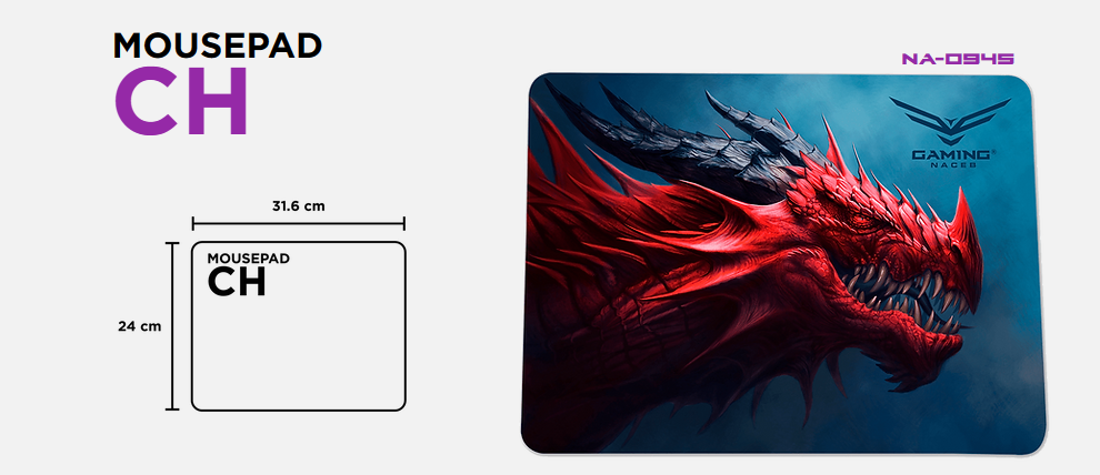 Goma, Base antiderrapante: Si, Grosor: 3 mm. El Mousepad Gamer Naceb Dragon X es un accesorio diseñado para mejorar la experiencia de juego en computadoras. Con unas dimensiones de 31.6 x 24 cm, ofrece una amplia superficie que permite un movimiento suave y preciso del ratón.