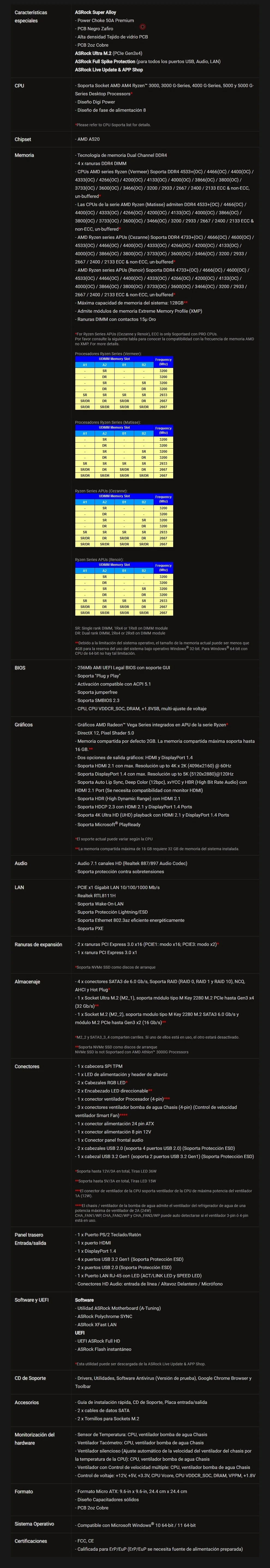 • Soporta Socket AMD AM4 Ryzen™ 3000, 3000 G-Series, 4000 G-Series, 5000 y 5000 G-Series Desktop Processors