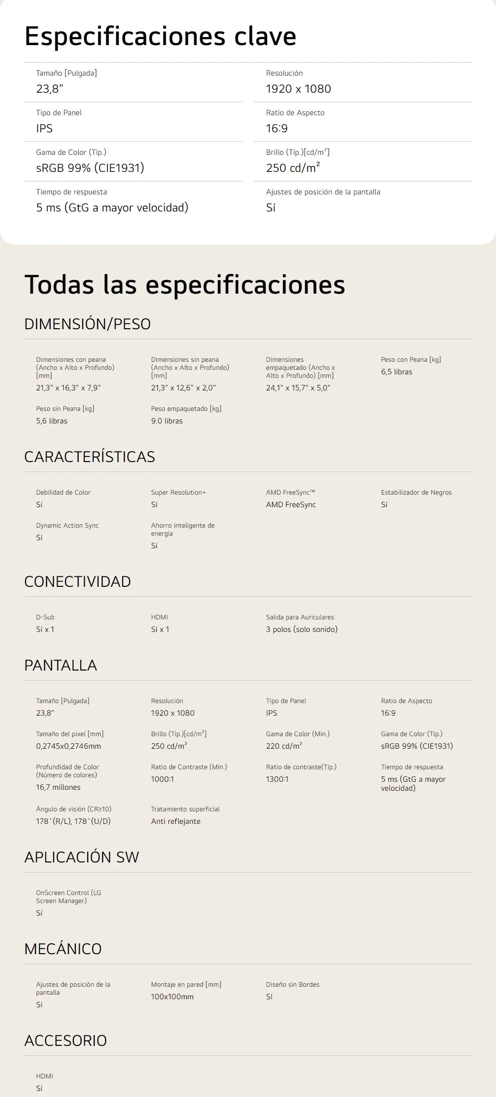 Monitor LG 24MR400 / 24″ / 1920 X 1080 FULL HD / 100Hz / Panel IPS / 5MS / D-sub, HDMI / AMD FreeSync / Negro / 24MR400-B.AWMQ