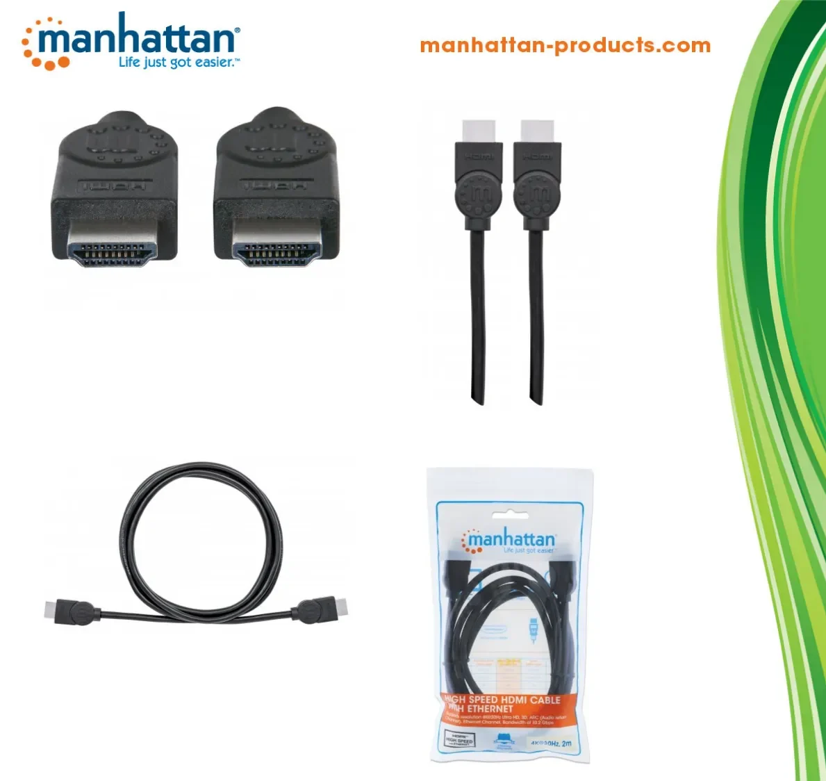 Sé el primero en valorar “Cable HDMI MANHATTAN 323215 / Alta Velocidad 4K 30Hz / Con Canal Ethernet / Macho a Macho / Blindado / 2 M / Negro”