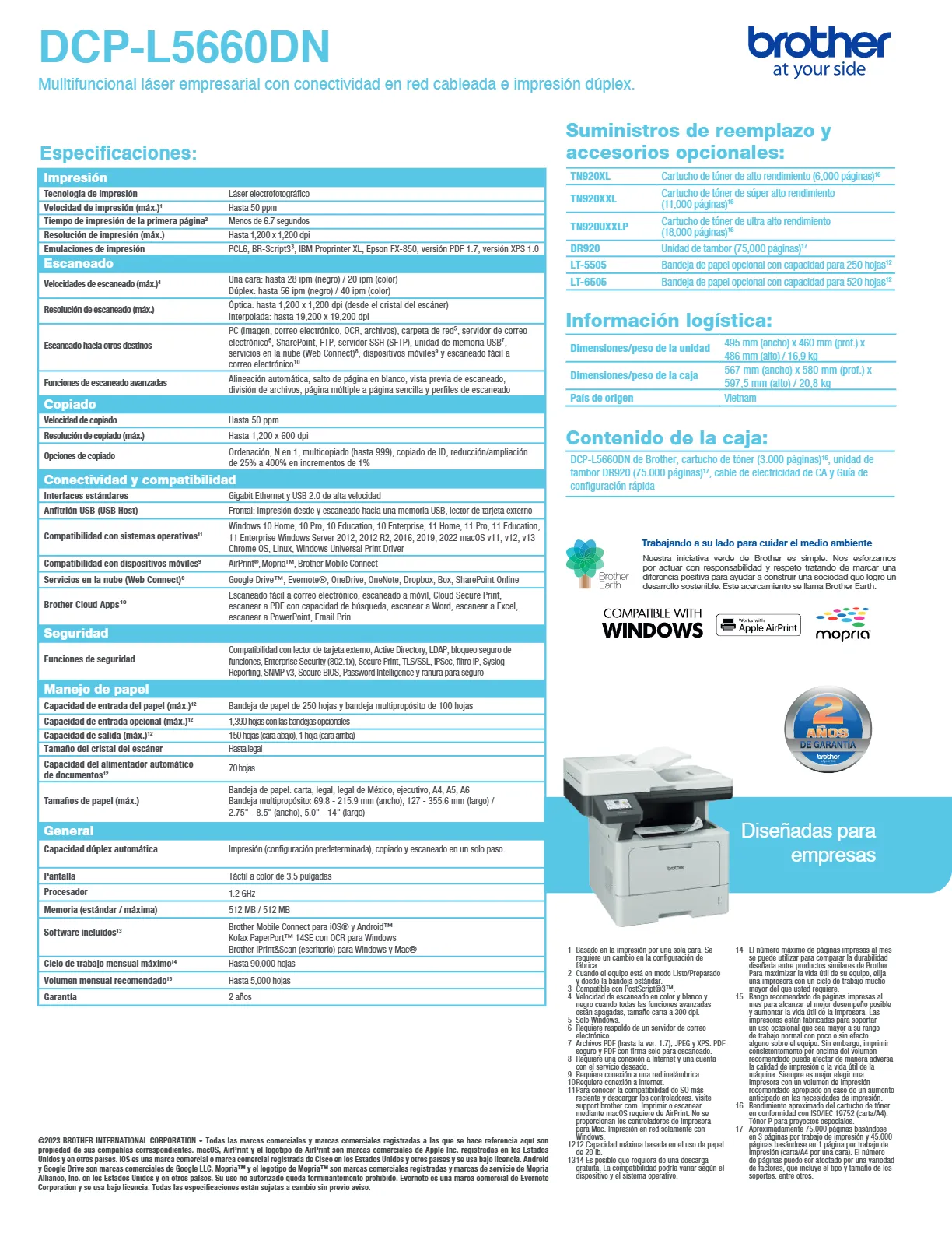 Impresora Multifuncional BROTHER VALOR DCPL5660DN