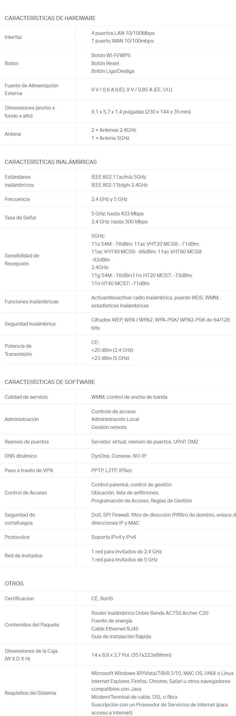 Router Inalámbrico TP-LINK ARCHER C20(W)