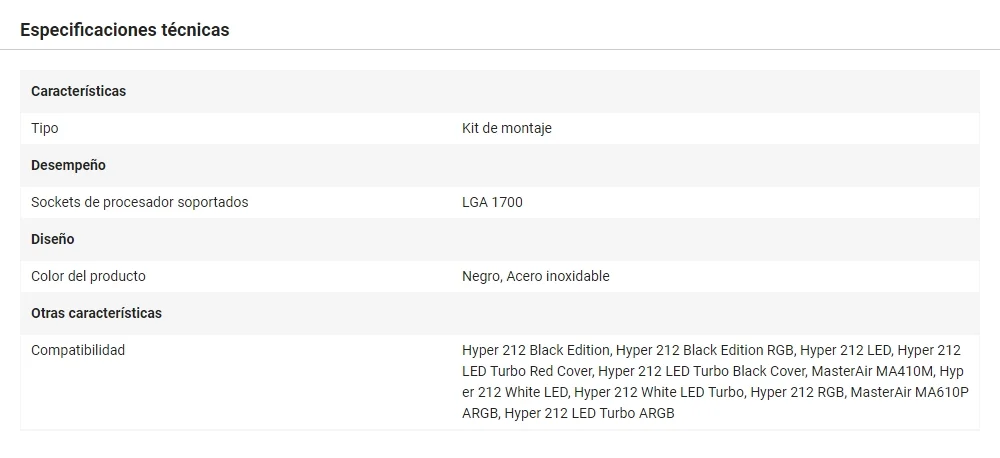Sé el primero en valorar “Bracket Kit De Montaje COOLER MASTER 603005420 / LGA 1700 / Negro”