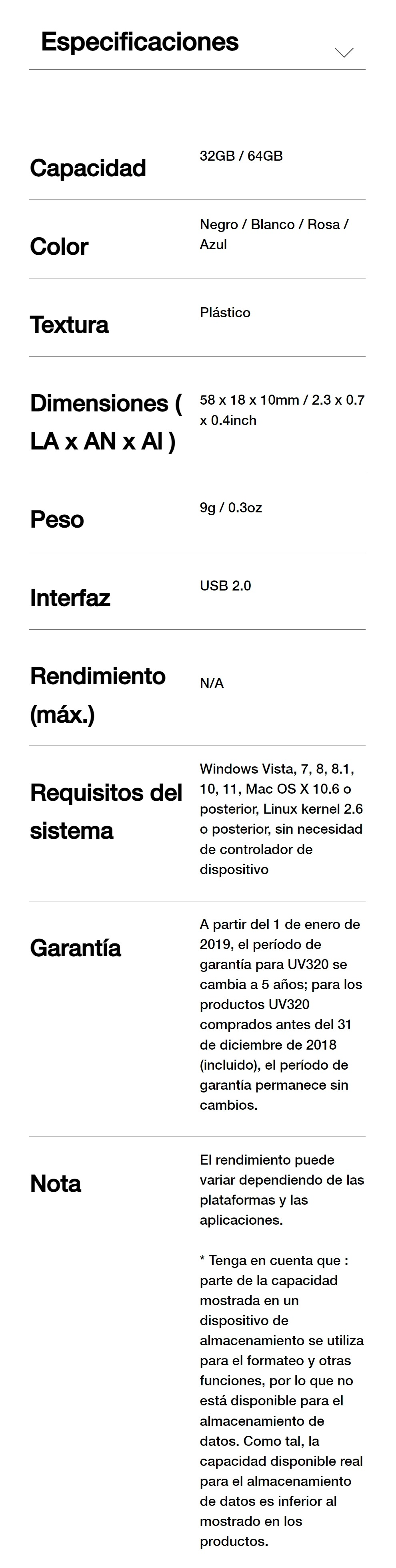 • Su capacidad para almacenar música, fotos, la biblioteca multimedia e incluso archivos personales, y la posibilidad de transportarlos y transferirlos a través de la interfaz USB 2.0 de alta velocidad hacen de esta unidad flash una herramienta imprescindible.