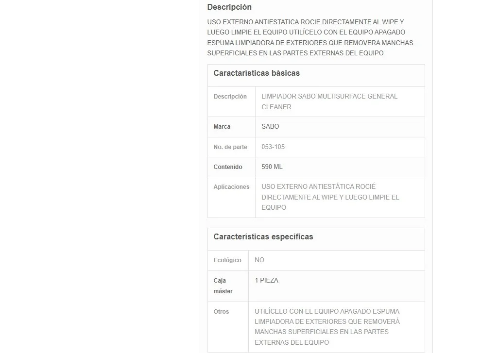 Limpiador SABO MULTISURFACE GENERAL CLEANER / Para Limpieza De Equipos De Cómputo / 590 Militros