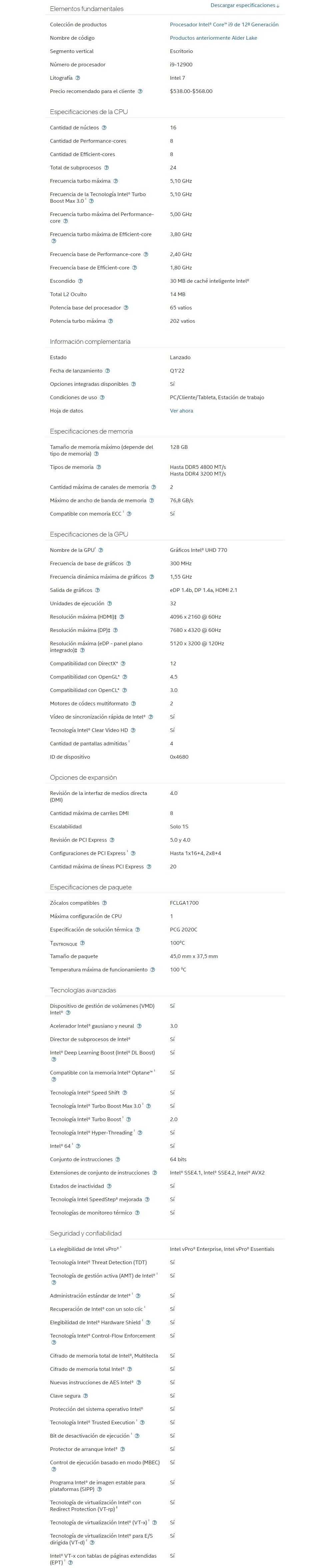 Procesador Intel Core I9-12900