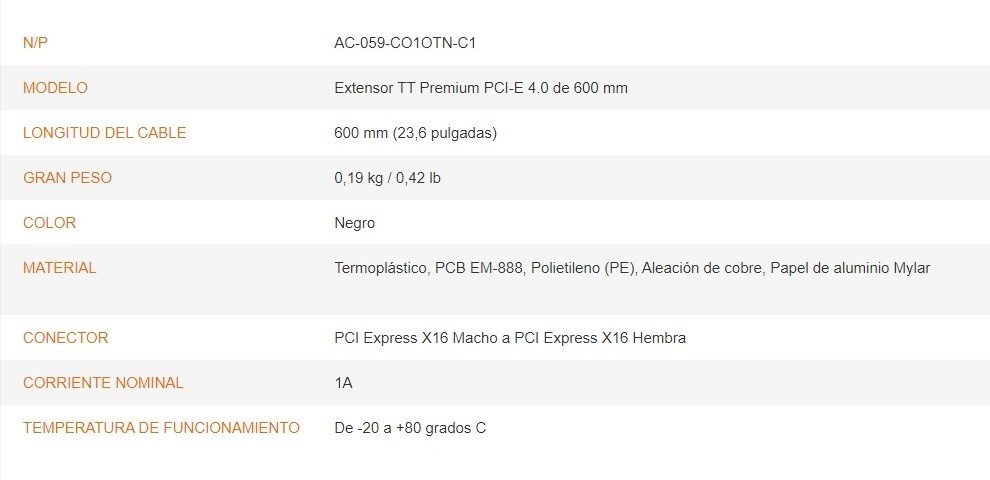 Cable Riser THERMALTAKE TT PREMIUM / Para Tarjeta De Video / PCI Express 4.0, 3.0, 2.0 / 600mm / Negro