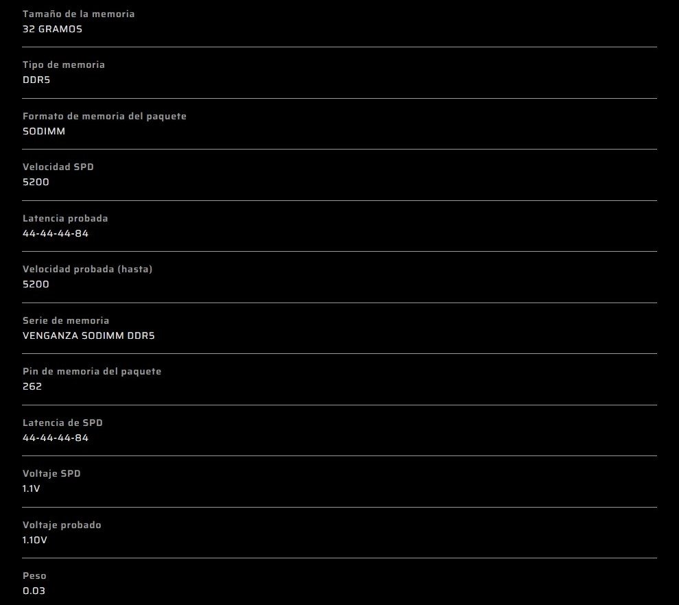 Sé el primero en valorar “Memoria RAM CORSAIR VENGEANCE SODIMM SERIES DDR5 / 32GB / DDR5 5200MHz / Para Laptop / CL44 / 1.1V / SODIMM / Negro”
