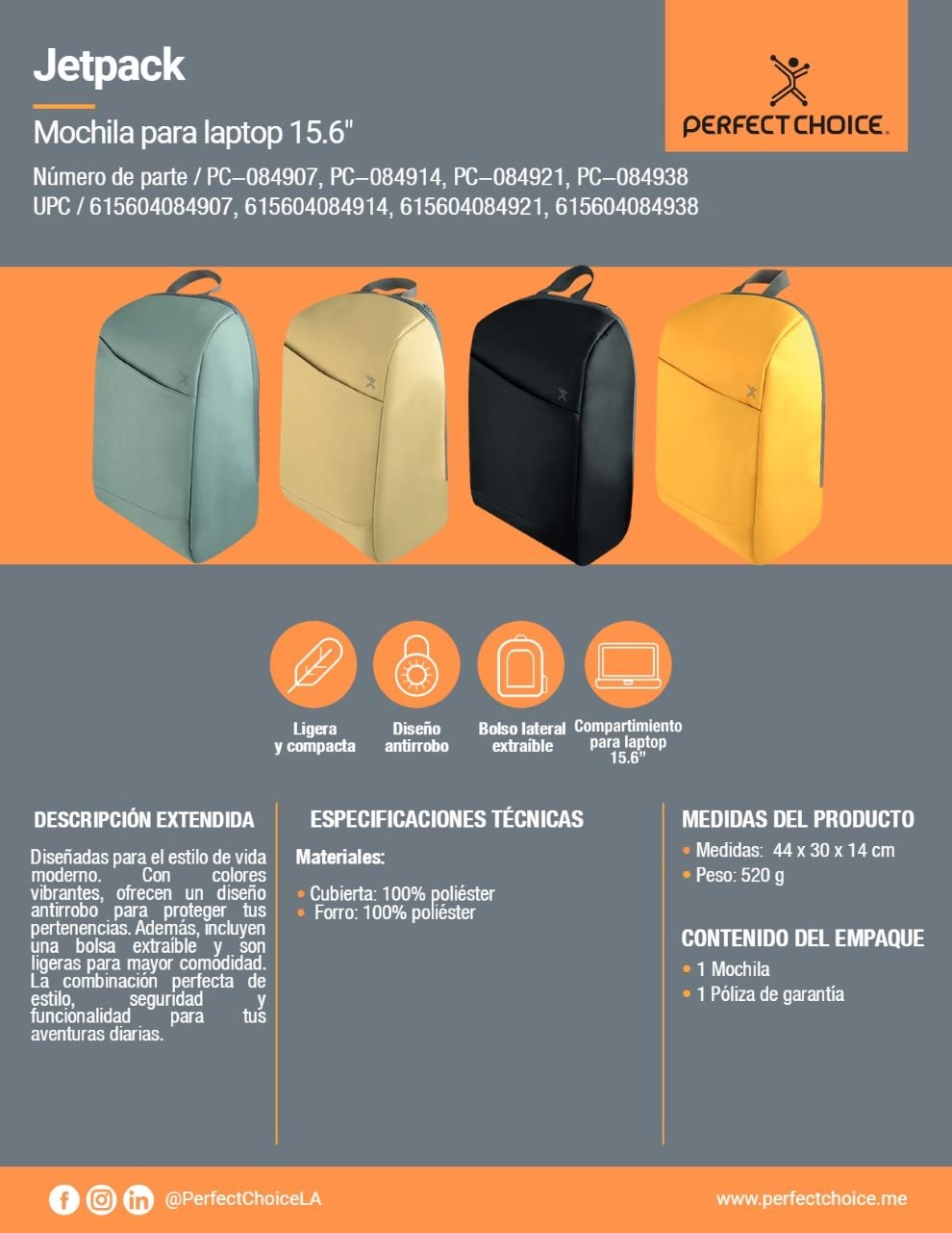Sé el primero en valorar “Mochila PERFECT CHOICE Jetpack / 15.6″ / Para Laptop, Viajes, Escuela / Poliéster / Ligera Y Compacta / Color Gris”