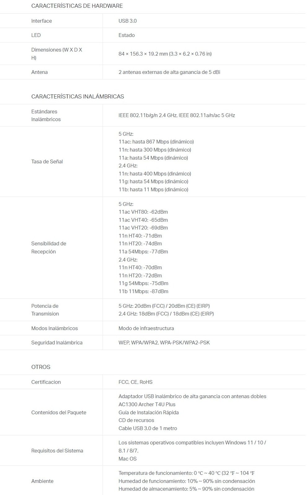 Adaptador USB inalámbrico TP-LINK AC1300 / Wifi / Doble Antena 5 dBi / Inalámbrico / 400 Mbps En 2.4 GHz, 867 Mbps En 5 Ghz / Color Negro