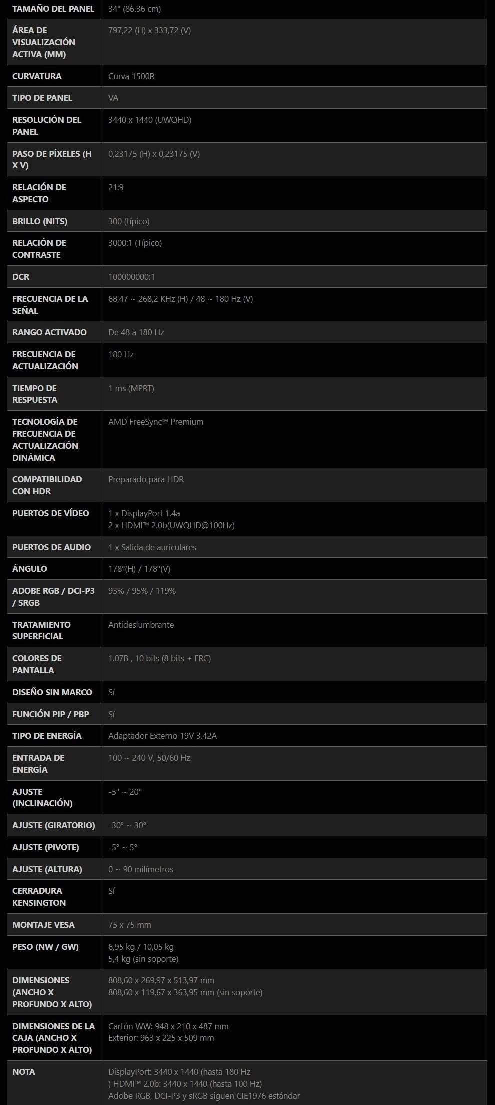 Nota: La precisión de la información, presentación, imágenes, título o especificaciones del producto pueden cambiar sin previo aviso.