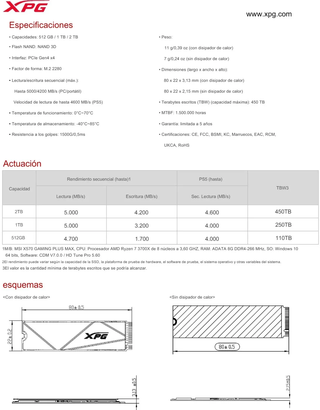 Sé el primero en valorar “Unidad SSD M.2 NVMe XPG GAMMIX S60 / 512GB / PCIe 4.0 / 2280 / Lectura 4700MB/s / Escritura 1700MB/s – Compatible Con PS5”