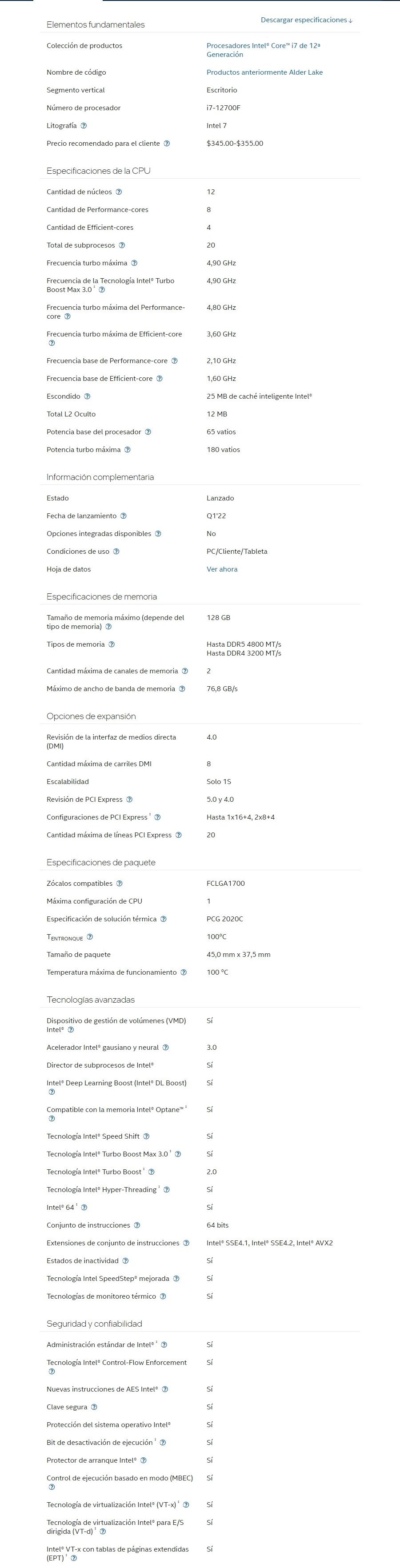 Intel® Core™ i7 i7-12700F