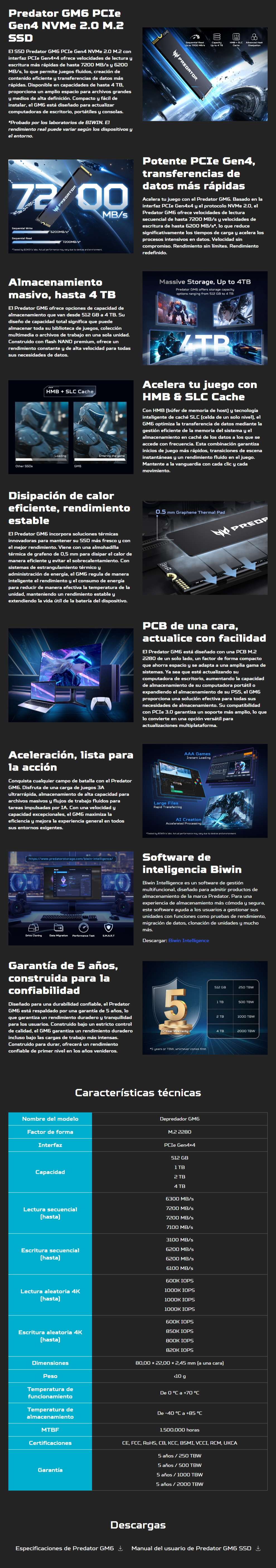 Sé el primero en valorar “Unidad De Estado Solido SSD M.2 NVME PREDATOR GM6 – 4TB, 22.80, PCIE 4.0, Lectura 7100 MB/S, Escritura 6100 Mb/S”