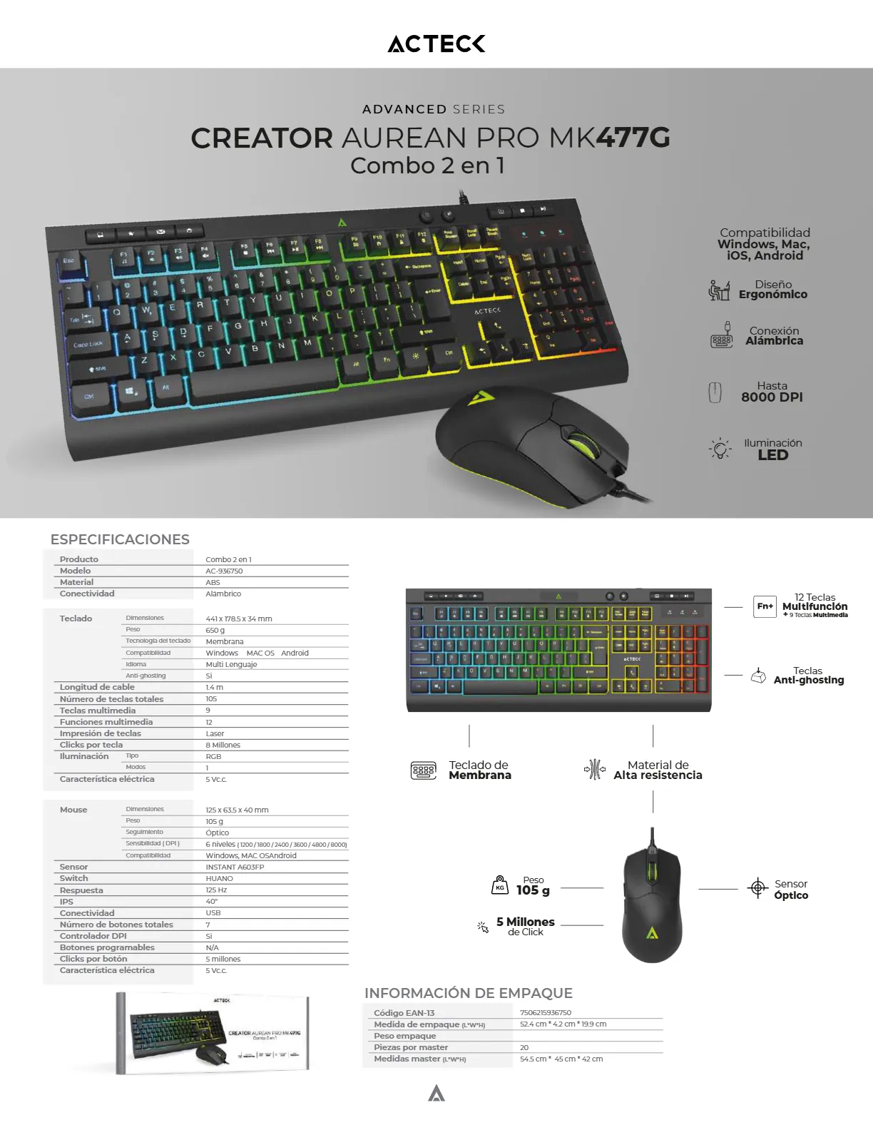 Kit De Teclado Y Mouse ACTECK Creator Aurean Pro MK477G