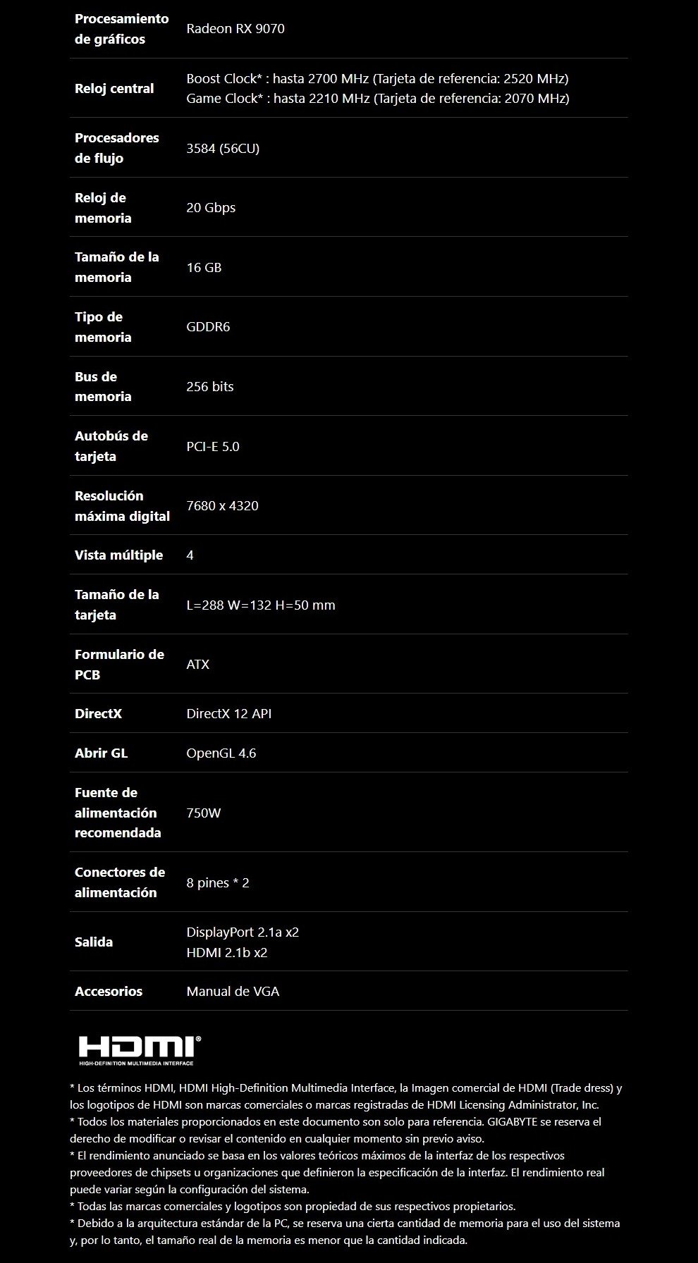 SKU: GV-R9070GAMING OC-16GD Categoría: