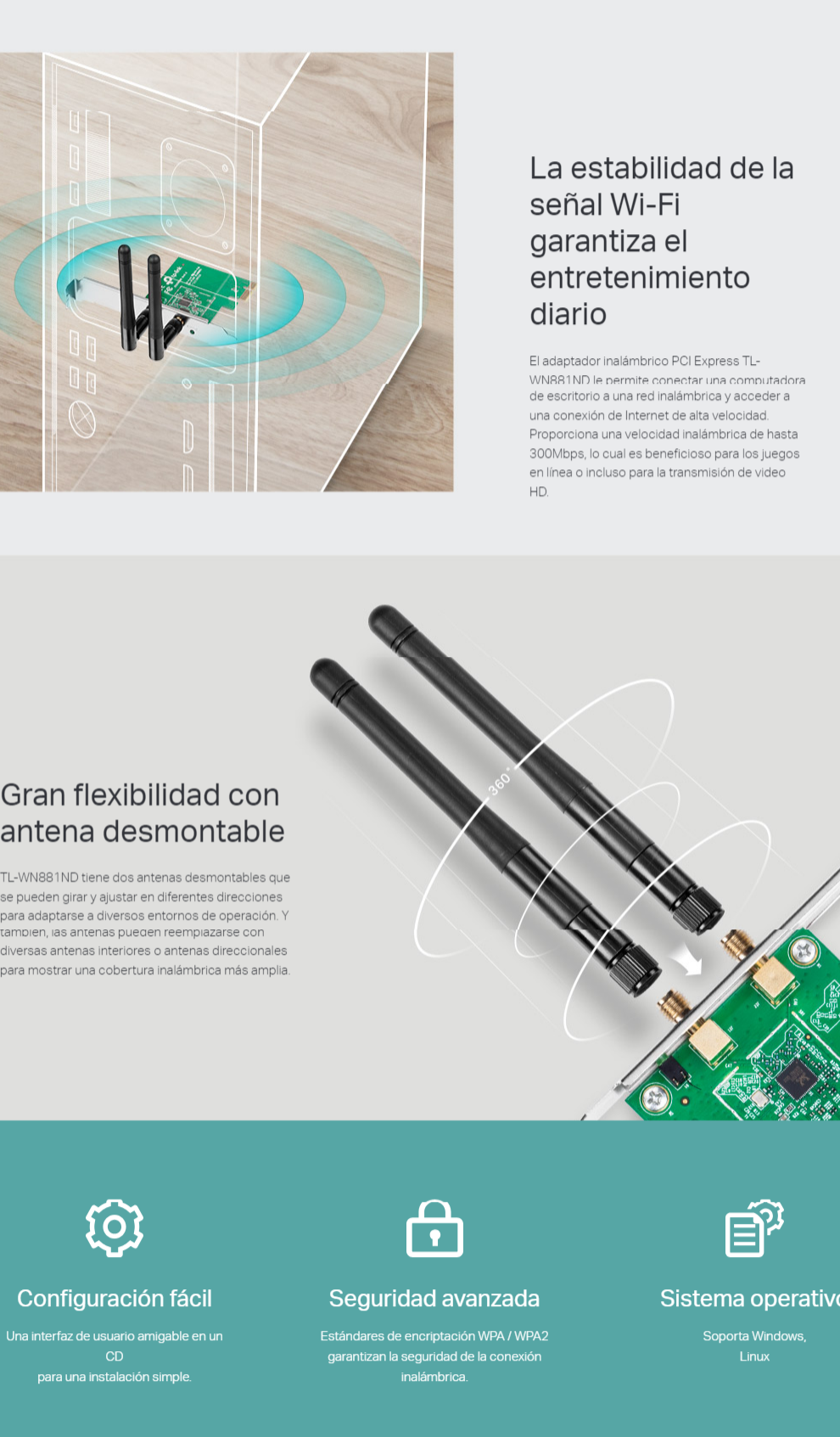 Tarjeta De Red Wifi PCI-Express TP-LINK TL-WN881ND
