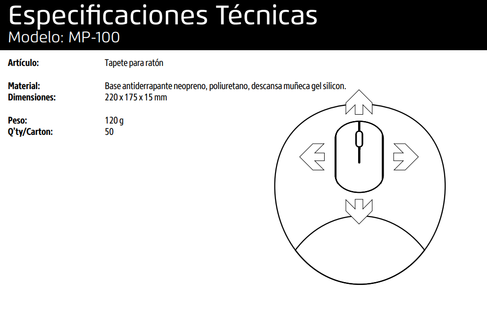 Para los que pasan largas horas utilizando su ratón, el mouse pad MP-100 de Vorago será su mejor aliado, brindando comodidad y soporte en la muñeca para un mejor desempeño.