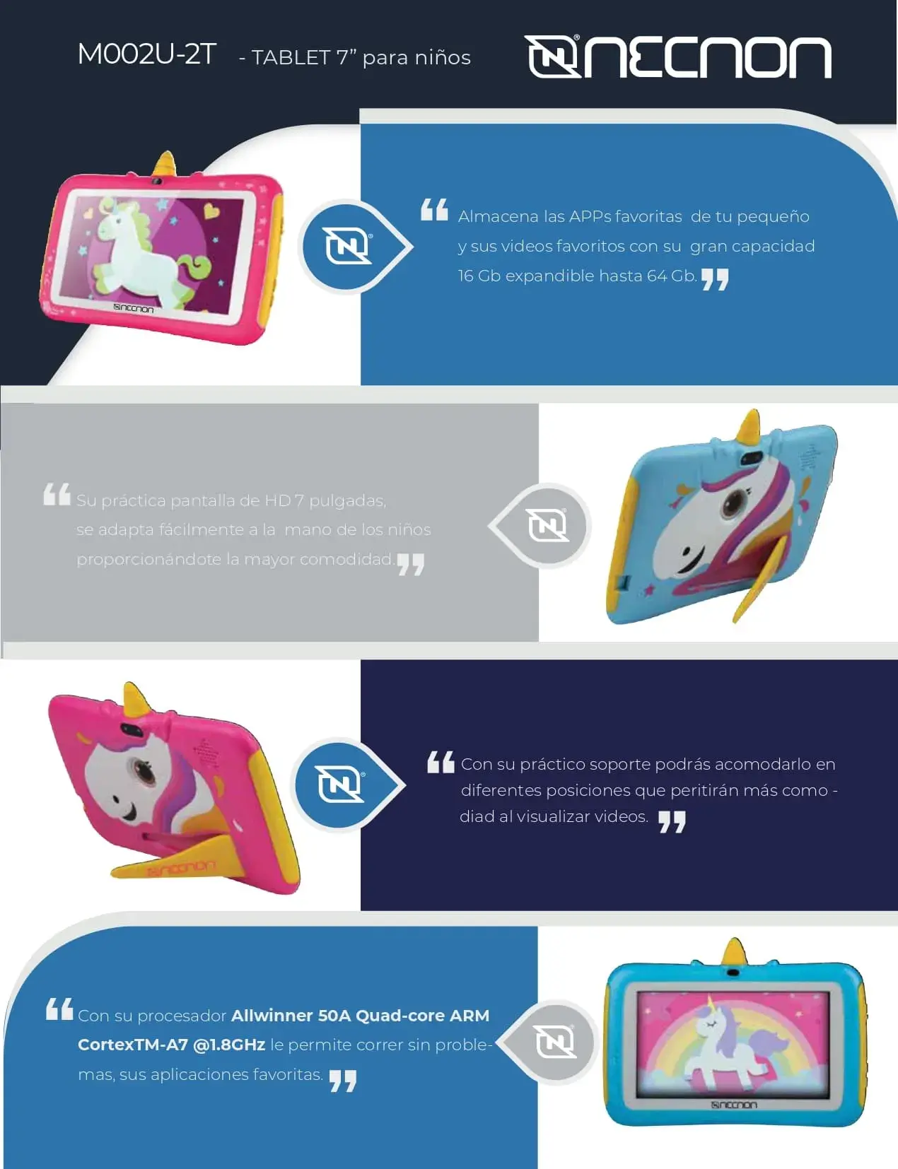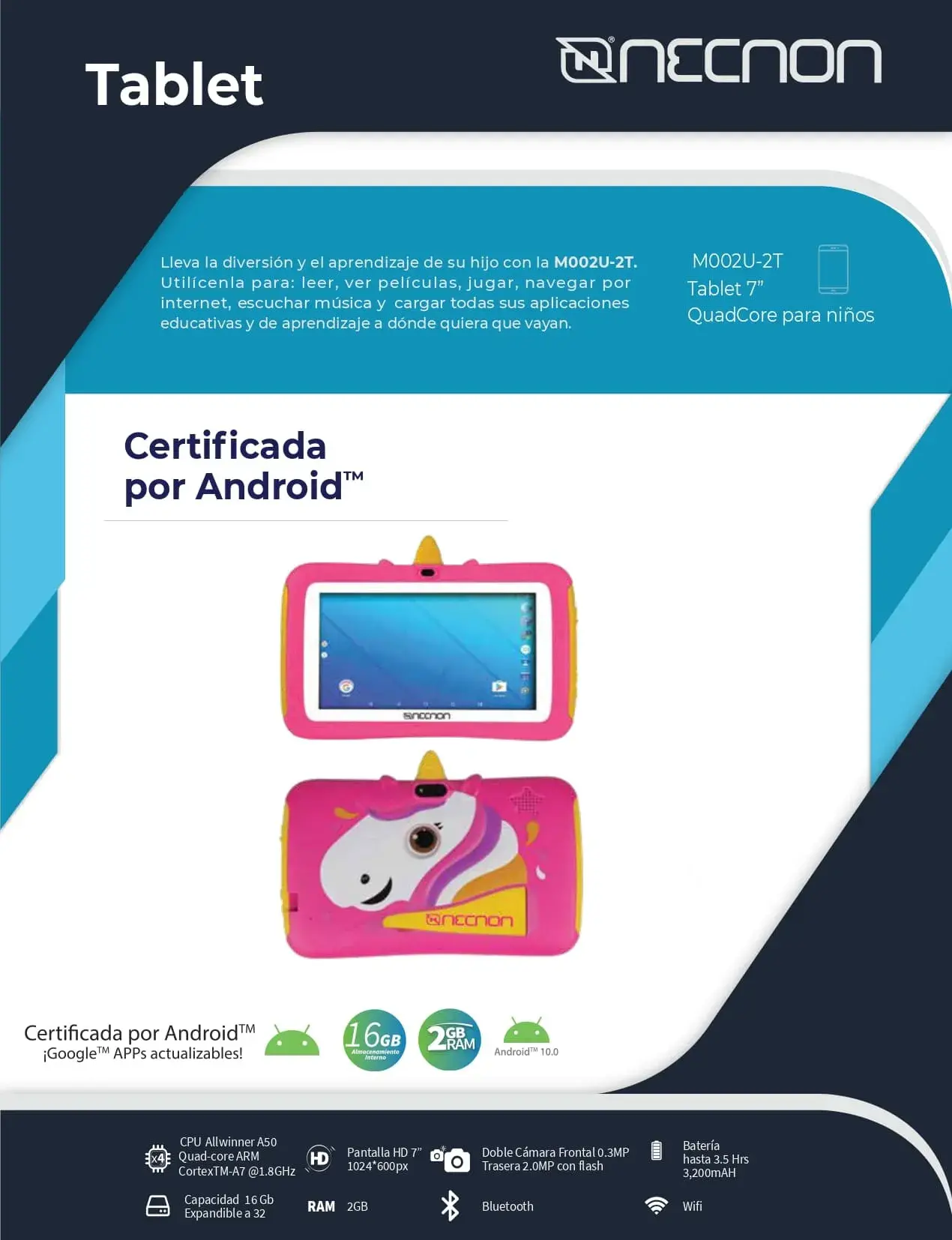Lleva la diversión y el aprendizaje de su hijo con la M002U-2T. M002U-2T Utilícenla para: leer, ver películas, jugar, navegar por internet, escuchar música y cargar todas sus aplica…