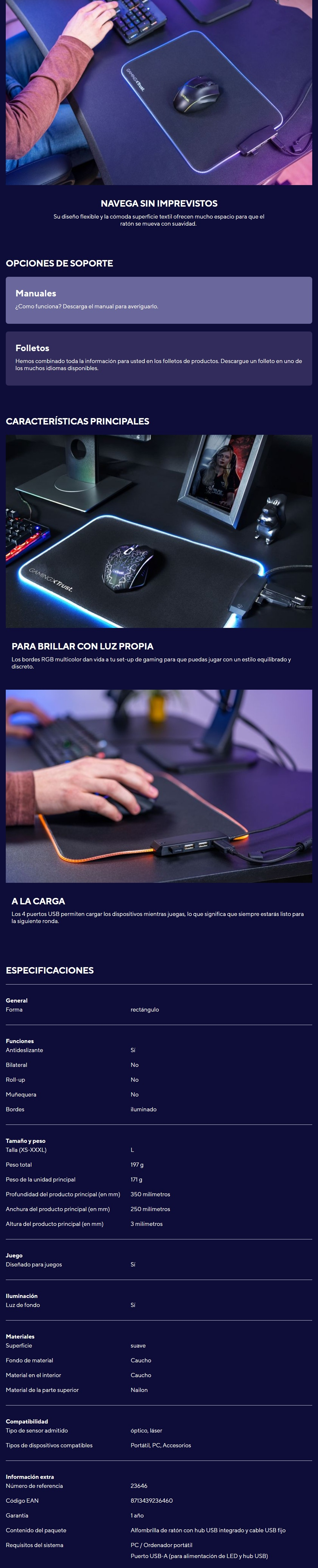 Sé el primero en valorar “Mouse Pad TRUST GXT 765 Glide Flex Rgb / 4 Puertos Usb / 35cm X 25cm X 3mm / Negro”
