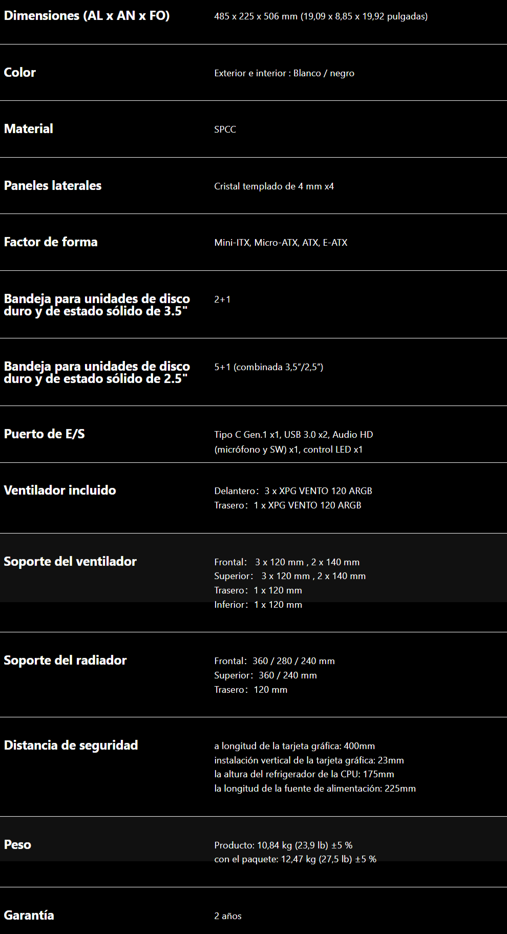 Gabinete Gaming XPG Battlecrusier / E-ATX / Cristal Templado / 4 Ventiladores Incluidos ARGB / USB 3.0, 3.1 / Negro