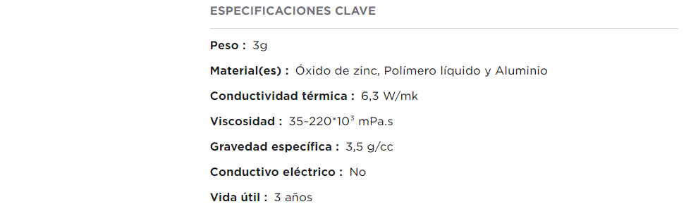 • Excelente rendimiento de conductividad térmica