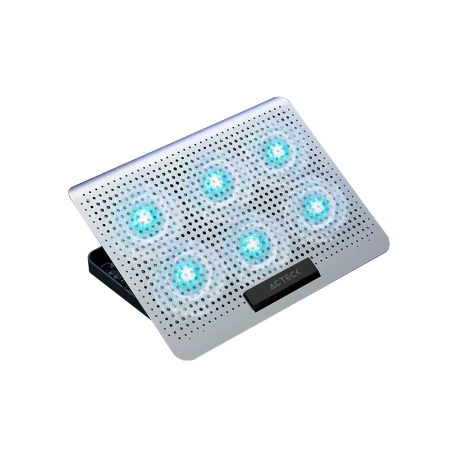 Base Enfriadora ACTECK Froost Max B480 / 2 Puertos USB / 16″ / 7 Niveles / 6 Ventiladores 10w RMS / Aluminio / Antiderrapante / Blanco
