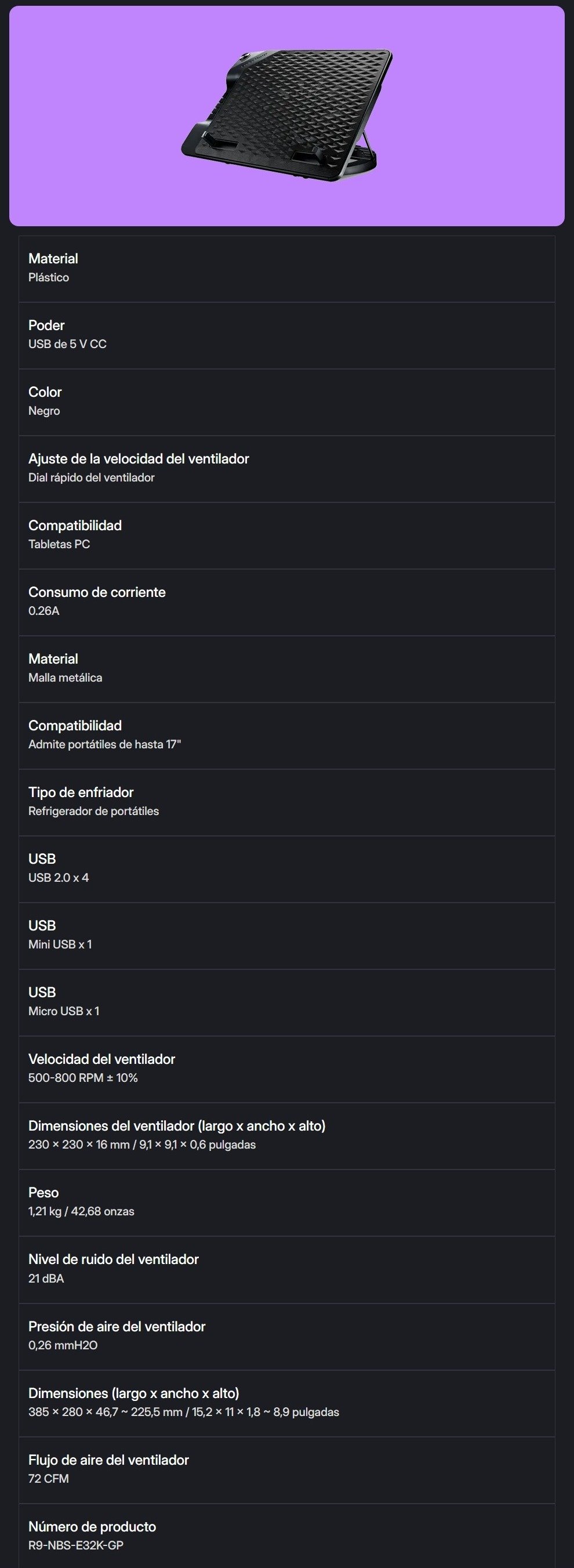 Nota: La precisión de la información, presentación, imágenes, título o especificaciones del producto pueden cambiar sin previo aviso.