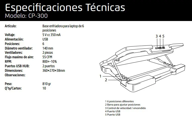Base Enfriadora VORAGO Cp-300 / 6 Grados De Inclinacion / 15.6 Pulgadas / Velocidad Ajustable / Usb