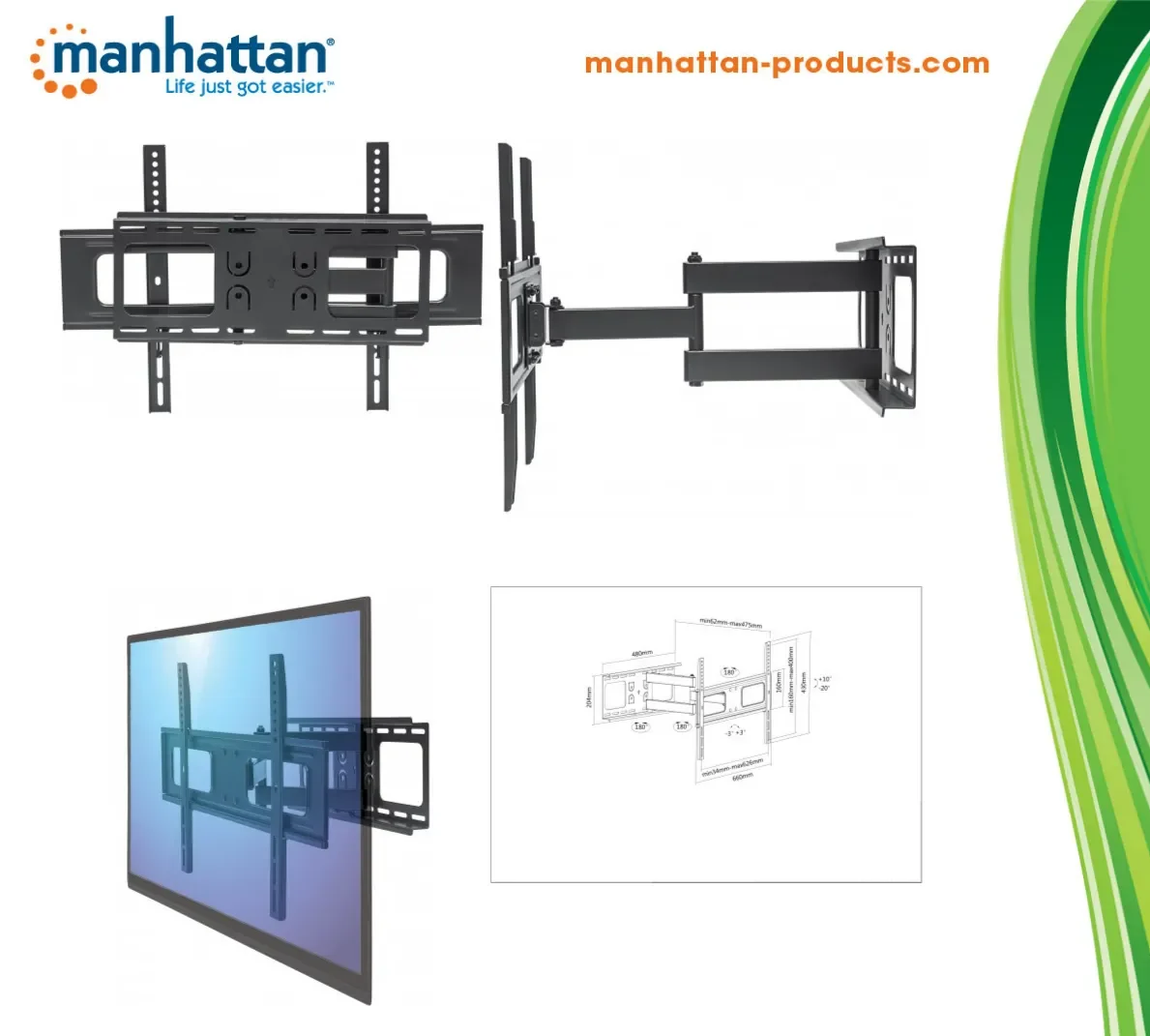 Soporte De Pared MANHATTAN 461283 / Articulado / Para Tv De 37 A 70 Pulgadas / Hasta 50kg