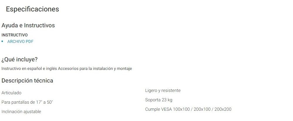 • Para pantallas de 17 a 50 pulgadas