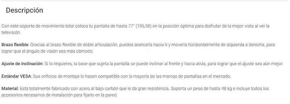 Soporte De Pared STEREN STV-105 / VESA / Para Monitor 77″/ Hasta 48kg / Angulo De Inclinación / Negro