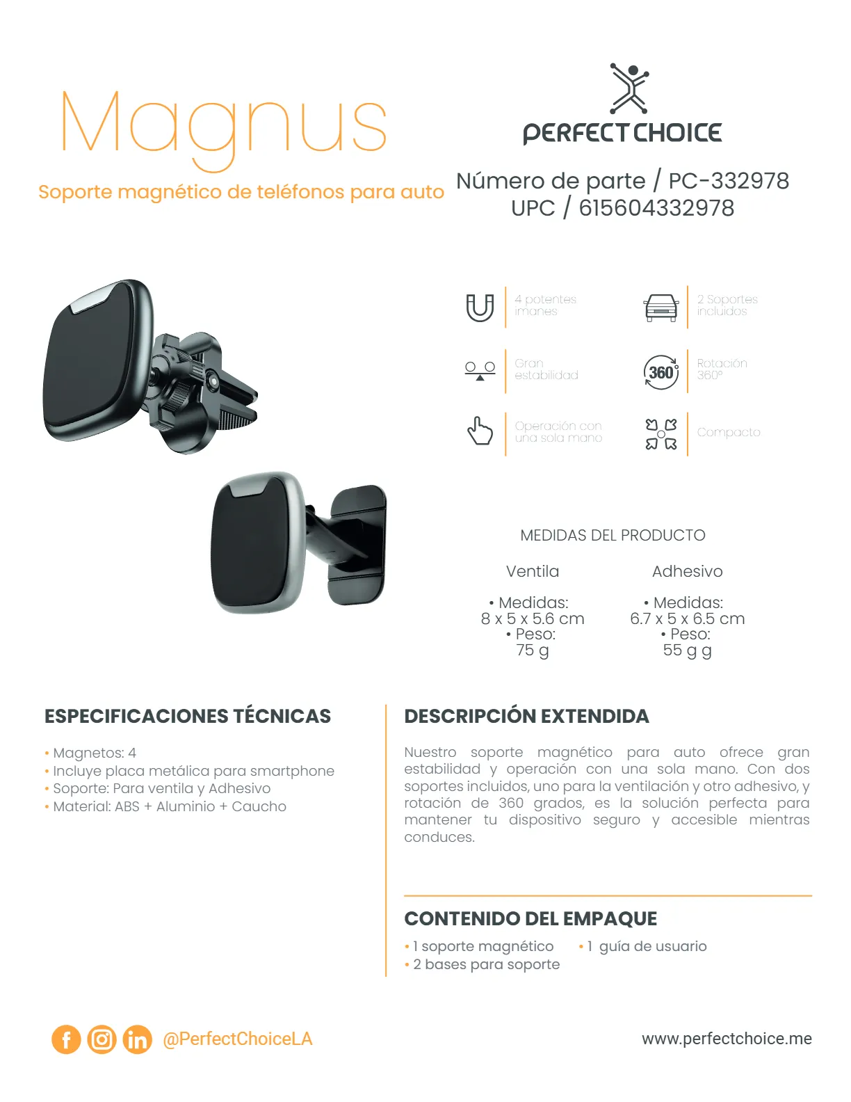 Sé el primero en valorar “Soporte Para Celular PERFECT CHOICE PC-332978 / Magnético/ Rotación 360° / Negro”