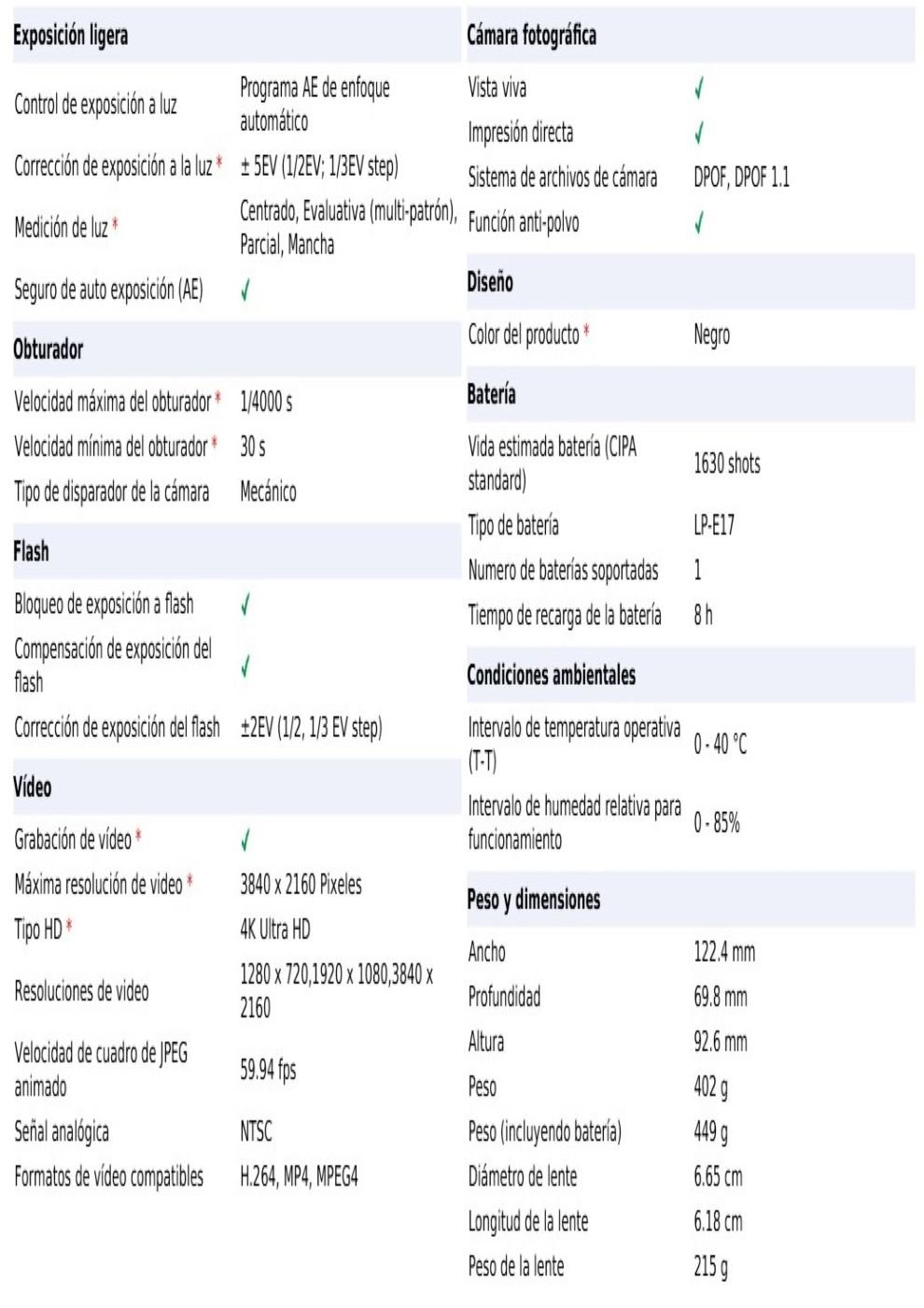 Cámara Web CANON EOS Rebel SL3 / 24.1 MP / Sensor CMOS / 6000 X 4000 Pixeles / Pantalla LCD / Ranuras Micro SD, SDHC / USB, HDMI / Color Negro