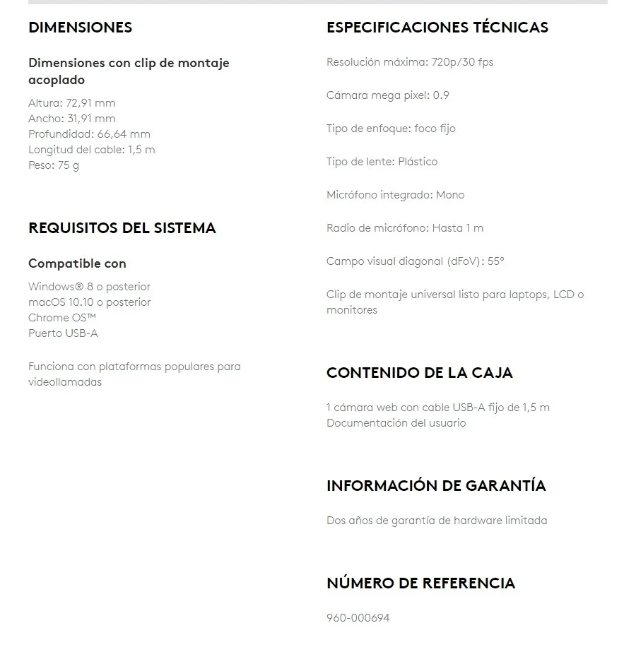 Sé el primero en valorar “Cámara Web LOGITECH C270 / Resolución 720 30Fps / Micrófono / Usb 2.0 / Negro”