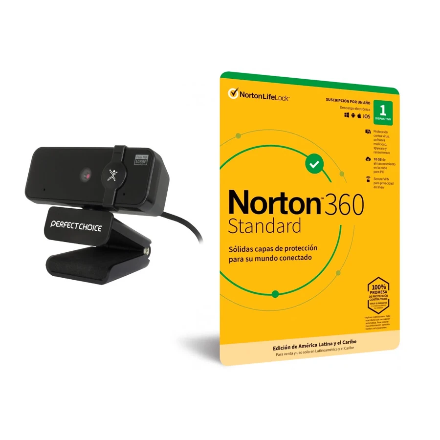 Kit De Cámara Web PERFECT CHOICE Mas Antivirus NORTON PC-990062 / 2MP / 1 Año 1 Equipo 360 ESTÁNDAR / 1920 X 1080p / Usb / Negro