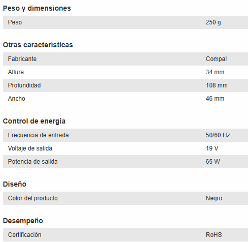 • Voltaje de salida: 19 V