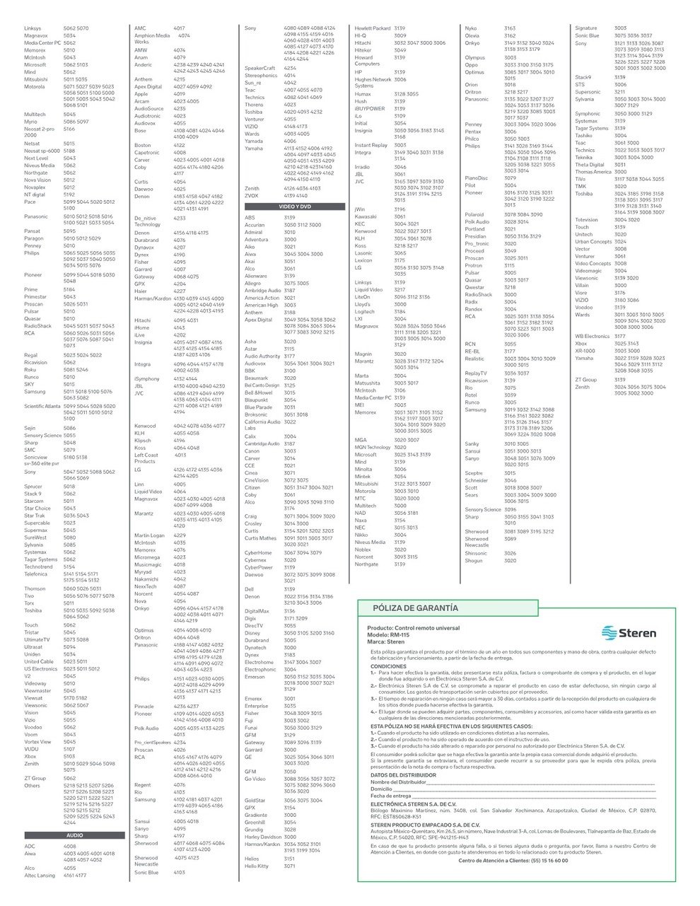 • Códigos programados para marcas como Sony, Panasonic, LG, Kenwood, Philips, Samsung y más