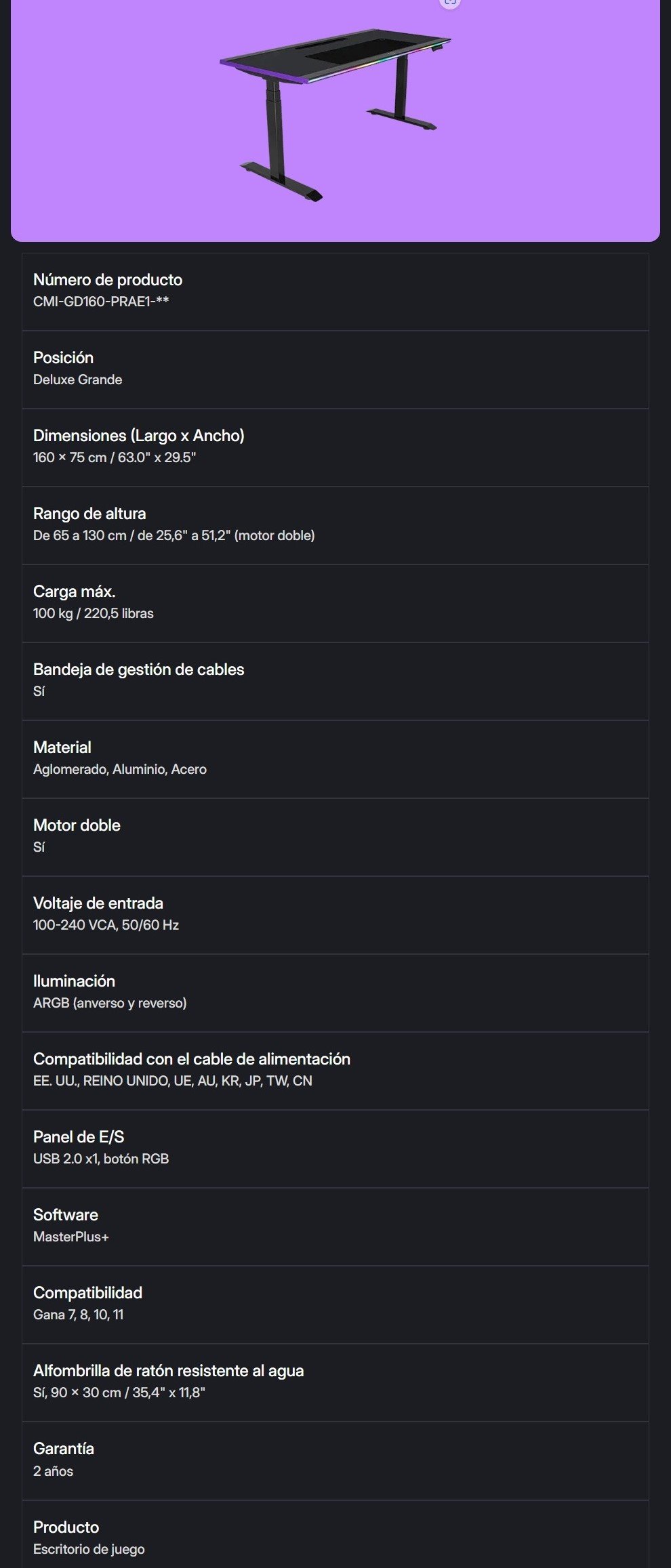 Sé el primero en valorar “Escritorio Gaming COOLER MASTER GD160 ARGB / Gaming Desk Black / 160 x 75 cm / Negro”