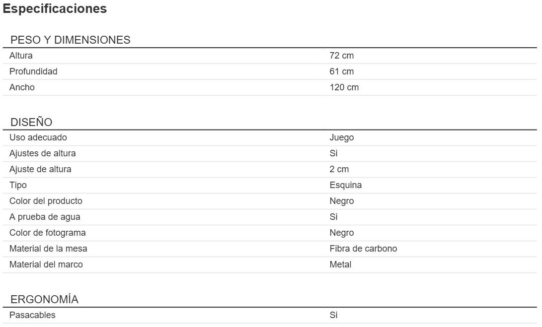 Todo lo que necesitas para tu zona de juego. Diseñado para soportar altas cargas de peso. Amplia cubierta, lo que permite jugar con espacio y movilidad. Firmeza, resistencia y soporte hacen de este escritorio una alternativa ideal para completar tu configuración.