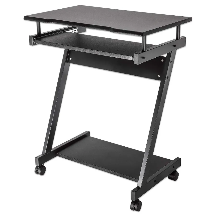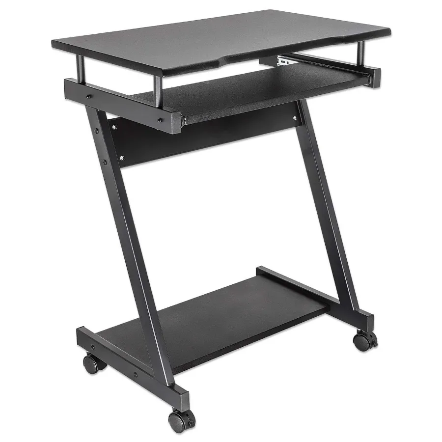 El escritorio compacto para computadora con bandeja deslizable para teclado, de Manhattan, brinda un espacio de trabajo estable que dura. Su estructura de acero y tableros de aglomerado revestidos de PVC crean un diseño ligero y resistente que soporta hasta 30 kg. Esto lo hace perfecto para crear un lugar más permanente para colocar tu PC de escritorio, monitor y más. Y si deseas mantenerte en movimiento, este escritorio compacto para computadora también tiene cuatro rueditas de alta calidad para que puedas moverlo libre y fácilmente a otros espacios.
