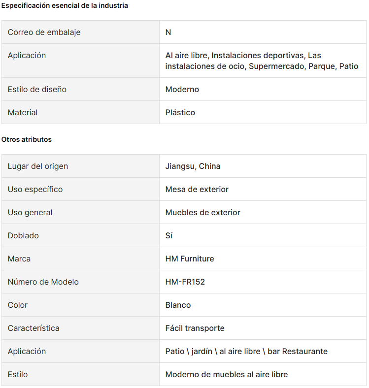 Mesa Plegable MODAMOB HM-FR152 / Calibre 25*1.0 MM / 240X74X76 CM / Blanco
