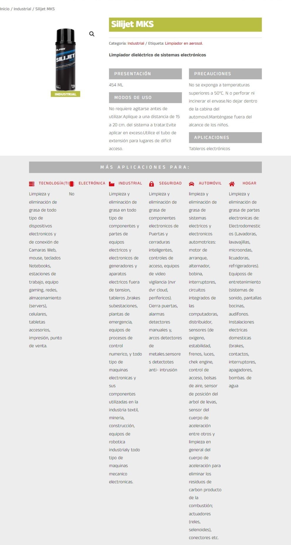 Silijet MKS es un limpiador dieléctrico en aerosol para limpieza y mantenimiento de mecanismos eléctricos, equipos electrónicos de Máquinas industriales.