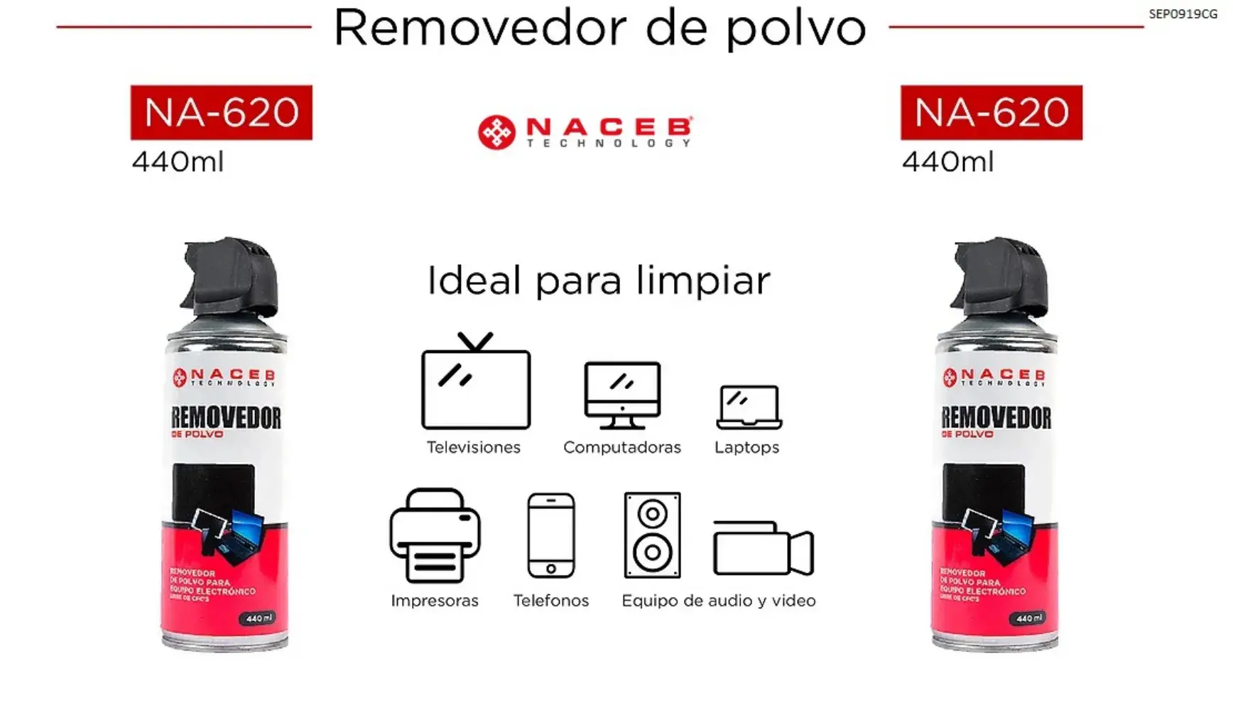 Aire Comprimido Naceb Na-620 440ML / Removedor De Polvo / Para limpieza De Equipos De Cómputo, Electrónicos y Máquinas de coser / NA-620