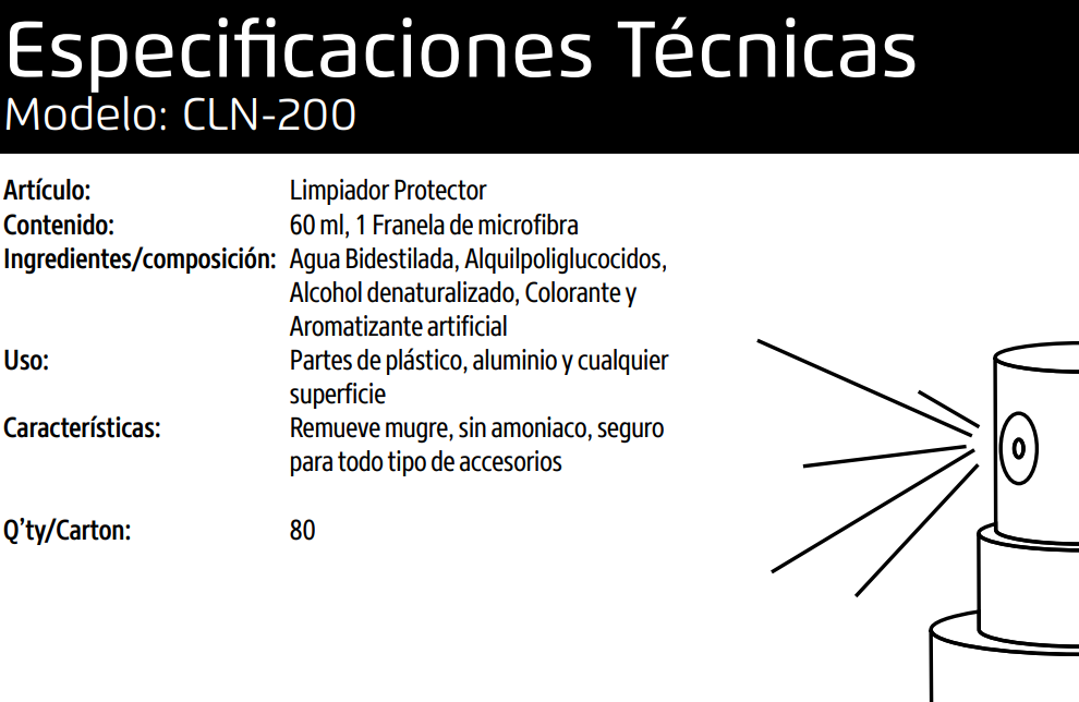 La solución CLN-200 de Vorago está especialmente formulada para la limpieza de equipos y accesorios, es ideal para limpiar plástico, aluminio o cualquier tipo de superficie.