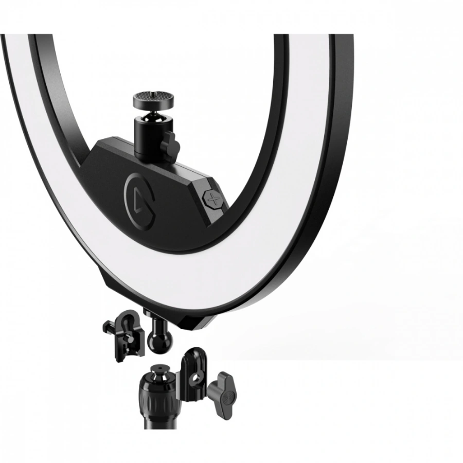 La altura del aro puede ajustarse entre los valores mínimos y máximos establecidos en 44 cm y 74 cm respectivamente, permitiendo adaptar el ángulo e intensidad lumínica según las necesidades específicas del usuario. Además, este modelo ofrece la posibilidad de regular la temperatura del color desde los tonos más cálidos (2900 K) hasta los más fríos (7000 K), brindando mayor versatilidad al momento de capturar imágenes o grabar vídeos.