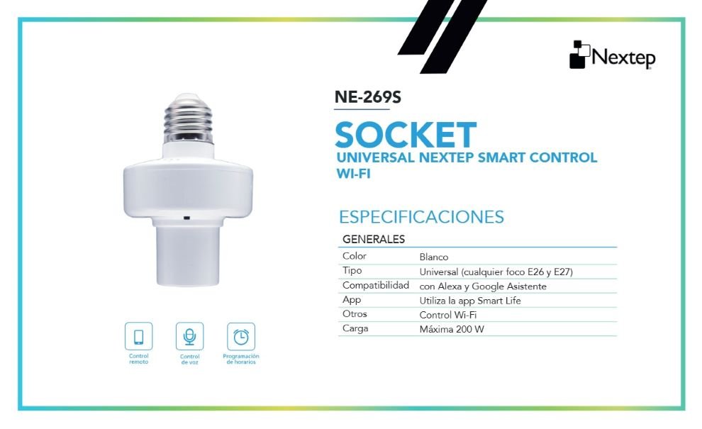 Socket Inteligente Para Foco NEXTEP NE-269S/ Control Remoto / WIFI / 200 W / Universal E26/27 / Color Blanco